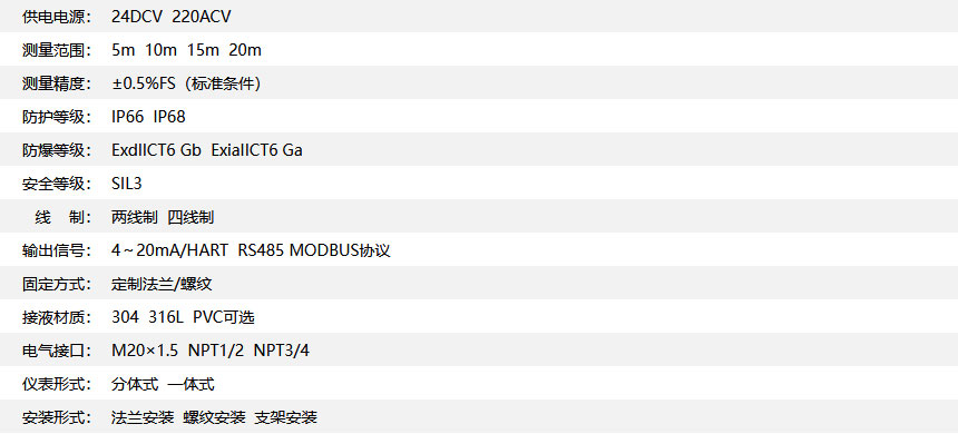 尤其適用于各種腐蝕性、粘稠及渾濁性液體的液位測量